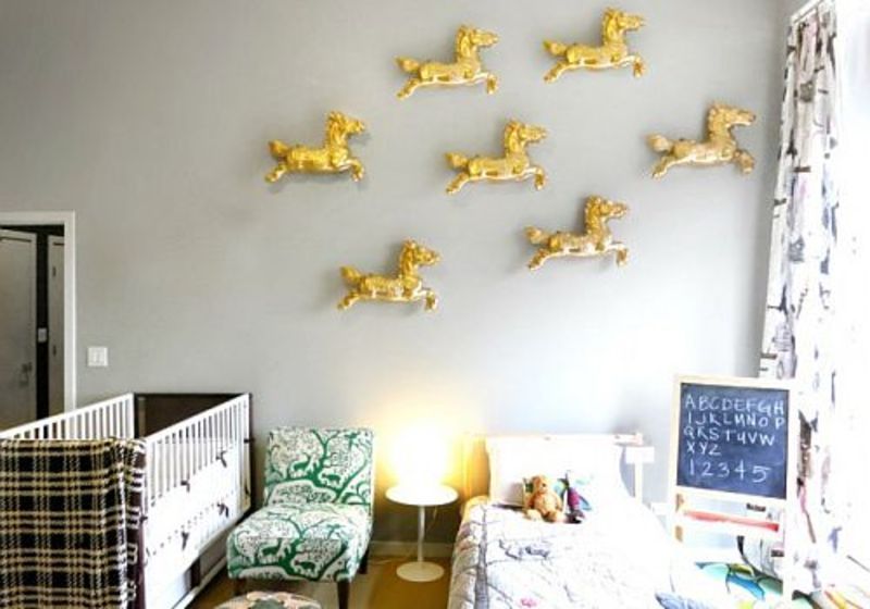 Daca micutul tau nu este fanul fluturilor desfasurati pe perete, poate poneii i se par mai interesanti pentru decorare. Acestia pot deveni cu usurinta elemente decorative pentru perete daca sunt decupati din plastic sau carton si accesorizati corespunzator. Pot fi asezati in parada si lipiti direct pe perete.