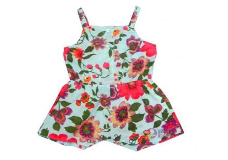 Nu doar culorile sunt punctul forte al colectiilor de vara pentru copii in 2013, ci si imprimeurile. Fie ca este vorba de flori sau motive rustice, aceste imprimeuri sunt esentiale pentru moda din sezonul torid. Salopeta inflorata pentru fetite este o piesa vestimentara foarte la moda in acest sezon, este creata din bumbac foarte fin, permitand pielii sa respire. Minifashion.ro, 50 lei