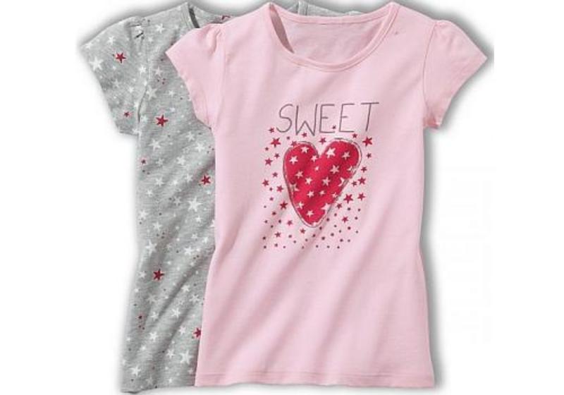 Chiar daca este vara, fetitele nu se imbraca doar in rochite largi si vaporoase. Uneori, mai prefera si tinutele sport sau din doua piese. In cazul in care fetita ta este pasionata de tricouri, atunci iti sugeram un set din piese extrem de haioase, cu imprimeuri simpatice. Cele doua tricouri scot in evidenta inocenta si gingasia copilariei, iar asortate cu fustite sau pantalonasi si adidasi, reprezinta alegeri practice si foarte la moda. Pret: 44.99 lei, Laredoute.ro