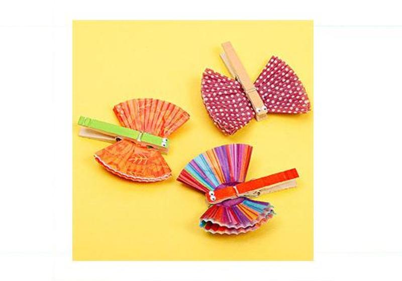 Fluturasii sunt unele dintre cele mai simple crafturi pe care le poate face copilul din carlige de rufe. Are nevoie doar de aripi, pe care le poate crea formand o fundita din diverse materiale textile. Se prinde fundita la mijloc cu ata, iar carligul vine prins chiar pe locul din mijloc, unde este legata. In capatul carligului se ataseaza doua antenute, formate din sarmulite sau decupate din hartie si se coloreaza capul fluturelui.
