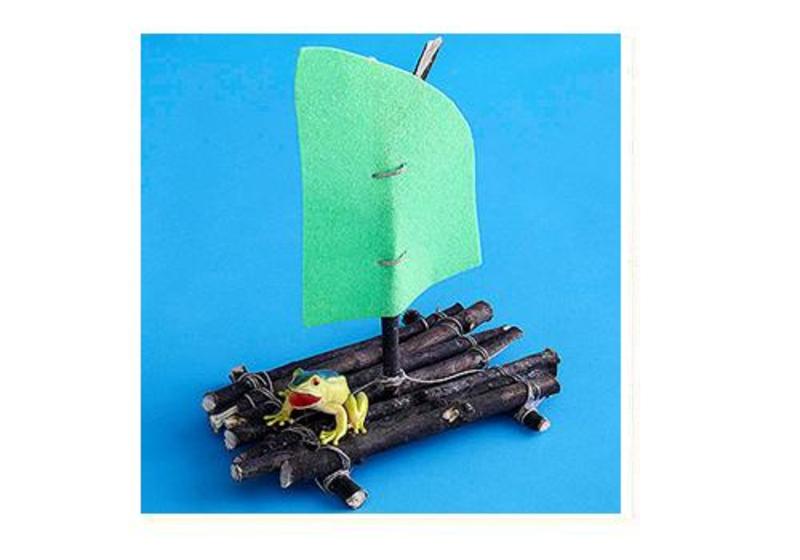 Invata copilul sa creeze o pluta din crengute de copac. Arata-i cum sa aranjeze si sa lege crengutele intre ele, astfel incat sa formeze pluta. Apoi, accesorizati impreuna pluta cu un steag, dupa care lasa copilul sa aleaga si un animalut micut din colectia lui de jucarii, pe care sa-l "cazeze" pe ea.