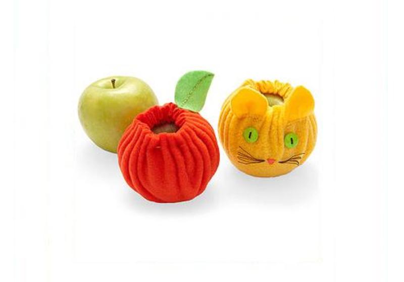 Daca si fructele sunt nelipsite din pachetelul pentru scoala al celui mic, o idee simpatica de craft de cusut este sa confectionati "hainute" sau saculeti pentru acestea, in care copilul sa le transporte mai usor. Aveti nevoie de mai multe materiale moi si catifelate, dar si de fetru, pentru a putea confectiona saculetii si a-i accesoriza in diverse forme. In functie de forma pe care o au fructele, saculetii pot fi reprezentati dee diverse personaje preferate de desene animate. De exemplu, saculetul pentru mar poate fi Hello Kitty, cel pentru para Humpty Dumpty, iar cel pentru piersica un cap de Mickey Mouse. Asezati fructul pe un material, imbracati-l cu el si apoi decupati-l astfel incat sa creati saculetul. Coaseti-i un soi de tiv, lasand suficient loc pentru introducerea unui snur. Dupa ce ati introdus elasticul sau snurul, imbracati fructul si trageti de el, astfel incat saculetul sa se muleze pe el. Apoi, din fetru si alte materiale, modelati o figurina pe saculetul format.