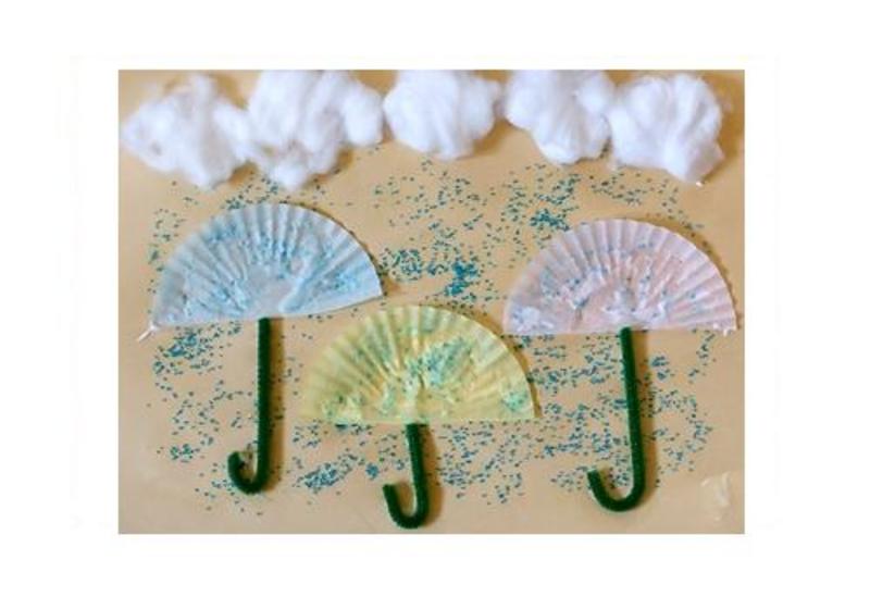 Un alt craft cu ajutorul caruia copilul poate intelege mai usor fenomenul ploii este plansa formata din nori, picaturi de ploaie si umbrele cochete. Aveti nevoie de un carton tare, de bucati de vata, margelute, lipici, sarme, ata colorata si forme de hartie de la bomboane de ciocolata. Lipiti norisorii formati din vata pe plansa. Formati umbrelutele din sarmulite indoite sub forma unor bastonase inversate, imbracate in ata colorata, si din impaturirea in jumatati a formelor de hartie. Asamblati-le pe plansa si lipiti-le. Apoi, daca aveti margelute, lipiti-le din loc in loc pentru a crea picaturile de ploaie. Puteti inlocui margelutele cu prafuri stralucitoare. In timp ce confectionezi craftul impreuna cu copilul tau, explica-i, cat mai pe intelesul lui, cum ia nastere acest fenomen meteorologic.
