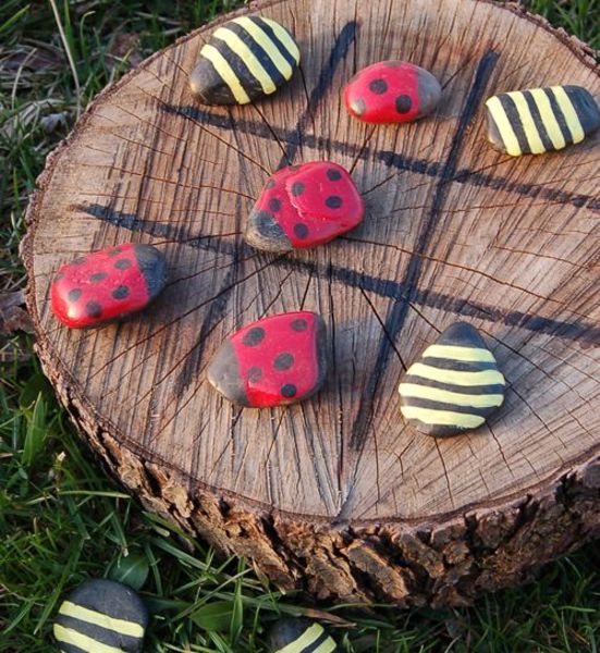 La urmatoarea plimbare in parc, aduna cateva pietricele de dimensiuni apropiate, pe care copiii sa le picteze apoi acasa, sub forma de gargarite sau orice alt model le trece prin cap. Jucati "X si O" in parc sau puteti crea propiul vostru joc din pietre colorate, improvizand o tabla cu patratele si dand cu zarul pentru a muta piesele.