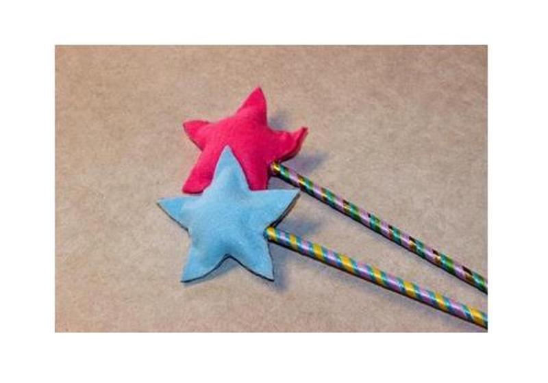 Daca ai o fetita, atunci creeaza impreuna cu ea o bacheta magica speciala pentru printese. Este o decoratiune simpatica si foarte usor de realizat, doar dintr-un bat de lemn, mai lung, o foarfeca, o bucata de fetru sau carton colorat, vata pentru umplutura si panglica. Se decupeaza din carton sau fetru 2 bucati identice in forma de stea, se cos un pic pe margini sau se leaga cu panglica si se umple steluta formata cu vata. Se ataseaza batului, iar bagheta magica este gata.