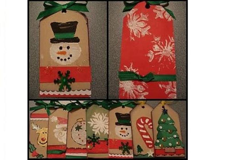 O alta idee simpatica de etichete de cadouri este aceea in care decupezi bucati de carton in forma trapezoidala (clasica), le agati cate o fundita din panglica si apoi lasi copilul sa le picteze cu acuarele, in ton cu specificul sezonului. Recomanda-i sa picteze fulgi de zapada, oameni de zapada, reni, stelute etc.