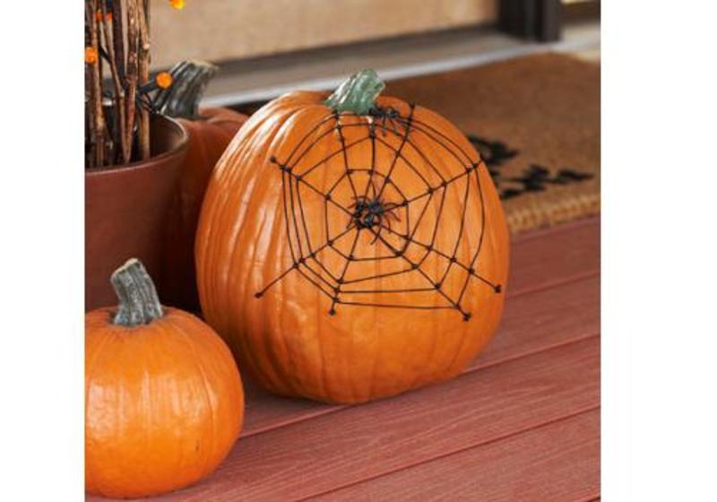 O alta idee simpla de decorare a dovleacului pentru Halloween consta in montarea unor fire de lana neagra sau sarmulite pe suprafata dovleacului, pentru crearea unei panze de paianjen. Luati un paianjen decorativ, din plastic sau silicon, si lipiti-l in mijlocul panzei create din sarma sau ata.