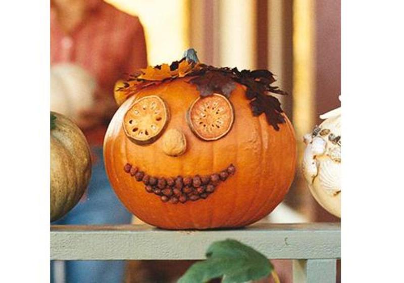 Folositi-va de fructele confiate sau uscate pentru a decora dovleacul si veti obtine un efect spectaculos. Formati un chip vesel din diferite fructe si atasati-i si o palarie din frunze uscate. Este o metoda originala si creativa de a transforma dovleacul intr-o decoratiune de Halloween.