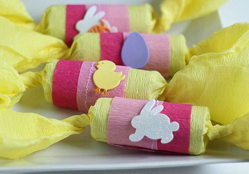 Invata copilul sa faca cele mai speciale cutiute pentru bomboane, intr-o forma orginala. Luati o rola de carton de la hartia igienica si umpleti-o cu tot soiul de bombonele ambalate, pana se umple. Apoi, imbracati rola de hartie igienica in servetel si rasuciti-l la ambele capete, astfel incat sa para o bomboana mai mare, invelita in servetel. Peste servetel, puteti sa mai accesorizati craftul cu tot soiul de figurine din fetru, carton sau cu margelute ori alte decoruri care sunt pe placul copilului.