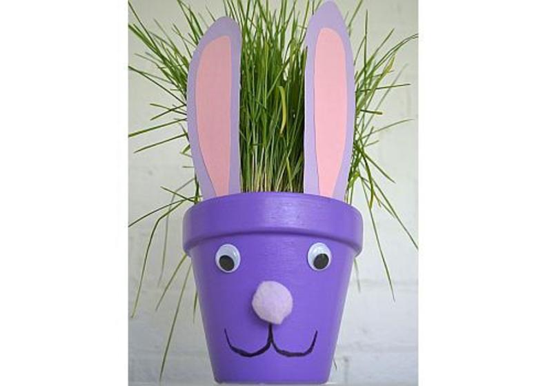 Transforma un ghiveci obisnuit din casa in cel mai simpatic craft de Pasti pentru casa ta. Luati un ghiveci, pictati-l intr-o culoare vesela si deghizati-l intr-un iepuras. Desenati-i botic si mustati cu o carioca neagra, lipiti-i un pampon pe post de nasuc, doi ochi, apoi decupati doua urechiuse din hartie cartonata si infigeti-le in pamant, in dreptul chipului.