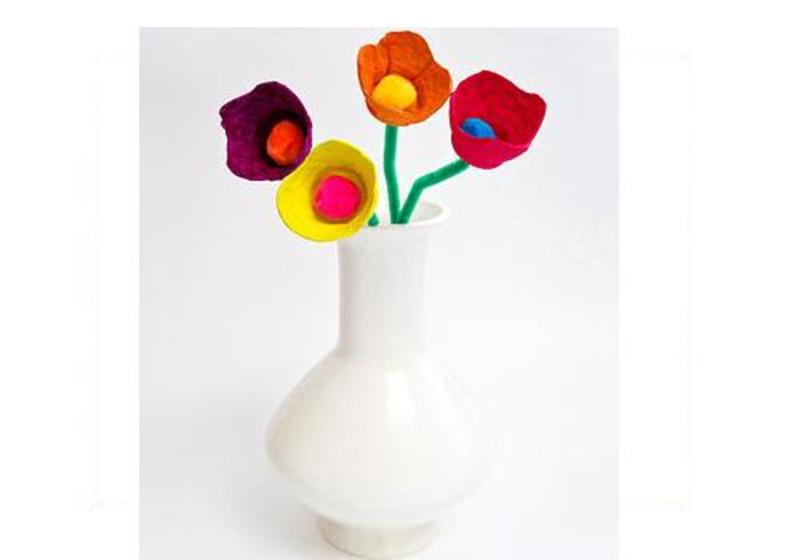 O metoda interesanta si creativa este sa transformi cartoanele de oua in flori decorative colorate si vesele pentru casa. Tot ce trebuie sa faceti este sa decupati fiecare cupa sau locas al oului din cofraj. Gauriti-le pe fiecare in parte, in centru, si atasati-le cate o sarmulita lunga si colorata pe post de tulpina. Apoi, lasa copilul sa picteze cupa in diferite culori si modele si pune-le aspectuos intr-o vaza. Nu-i asa ca arata minunat? Sunt tocmai potrivite pentru decorarea casei tale in aceasta primavara!