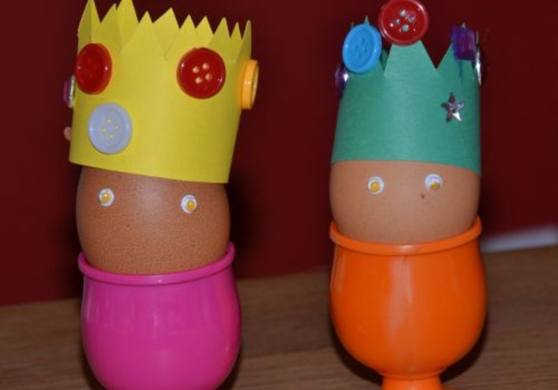 Transforma ouale de Paste, impreuna cu prichindelul tau, in regi si regine, creand cele mai simpatice, colorate si vesele coroane regale din carton. Decupati cartonul sub forma unui gardulet, apoi lipiti-l la capete si incepeti sa il accesorizati cu sclipici, strasuri, nasturi si alte decoratiuni interesante, pentru a-i oferi un aspect deosebit, demn de statutul unui rege sau o regina.
