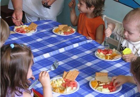 Orele si meniul pentru micul dejun, masa de pranz si gustarea de dupa-masa sunt concepute de medicul nutritionist, mancarea fiind satioasa, sanatoasa si indestulatoare. Gustarea de la ora 16:00 este foarte usoara, bazata pe fructe si biscuiti, alimente ce trec extrem de rapid prin tractul digestiv si astfel nu tin de foame. Iar de la ora 12 pana la ora 17 este timp suficient sa i se faca copilului