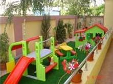 spatiu generos de joaca in aer liber, amenajat cu gazon natural si gazon artificial, dotat cu casuta pentru pitici, playground cu tobogane, nisipar, balansoare si foarte multa verdeata