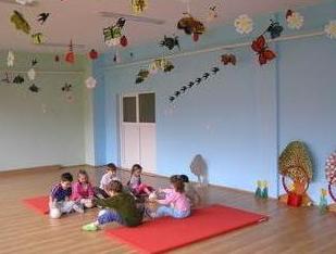 4 sali de grupa dotate cu mobilier, jucarii si materiale didactice adecvate desfasurarii procesului instructiv - educativ, dormitor, sala de sport, bucatarie, sala de mese, cabinet metodic, punct sanitar de prim - ajutor, bazin de inot, teren de tenis de camp si 2 terenuri de sport multifunctionale