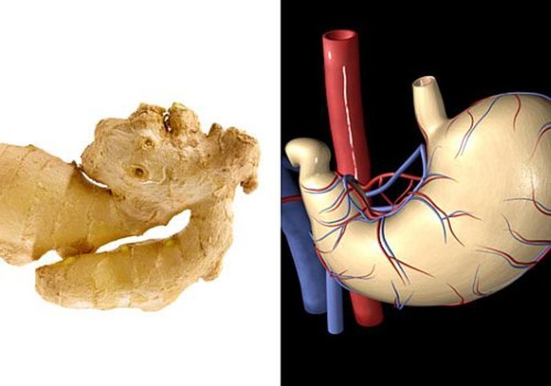 Radacina de ghimbir are o forma foarte asemanatoare stomacului si este interesant faptul ca multe dintre efectele ei pozitive asupra sanatatii au legatura cu sistemul digestiv. Ghimbirul ajuta digestia, este un calmant gastric natural si are un efect rapid impotriva senzatiei de greata sau voma.