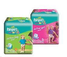 Scutece Pampers Active Boy Active Girl Pampers sunt scutece speciale in forma de chiloþel cu un strat extra dry in fata pentru baieti si în mijloc pentru fetiþe. Se schimba usor precum chiloteii, si mai confortabile decat scutecele cu banda.