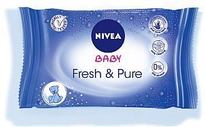 Servetele umede NIVEA Baby Fresh & Pure. Studiile clinice si dermatologice au demonstrat ca servetelele umede Pure & Fresh de la NIVEA Baby curata pielea la fel de delicat precum cea mai pura apa, pastrand intacta bariera naturala de protectie a pielii. Acestea contin apa pura si extract de aloe vera, pentru o piele catifelata si fara iritatii.