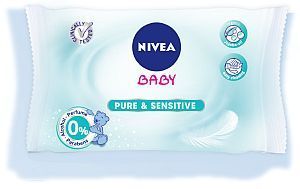 Servetelele umede NIVEA Baby Pure & Sensitive. Create special pentru nou-nascuti si bebelusii cu risc crescut de alergii, servetelele umede NIVEA Baby Pure & Sensitive ofera cea mai delicata curatare si ingrijire. Imbibate cu o lotiune usoara, fara parfum, si ulei de jojoba, pastreaza pH-ul natural al pielii si calmeaza chiar si cea mai sensibila piele.