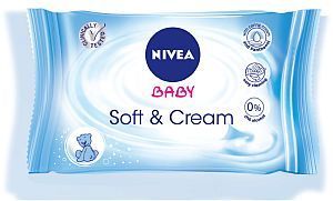 Servetelele umede NIVEA Baby Soft & Cream. Fiind imbibate in crema delicata cu panthenol, servetelele umede NIVEA Baby Soft & Cream calmeaza instantaneu pielea iritata a bebelusilor si curata in mod eficient.