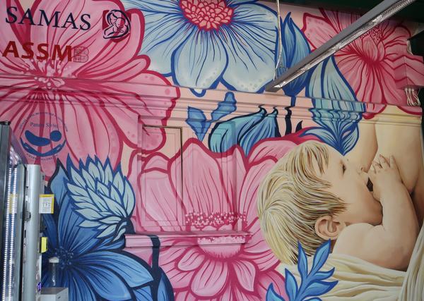Astfel, asociatia SAMAS si ASSMB continua seria muralelor de arta moderna pentru promovarea alaptarii inceputa in 2022 la maternitatea Spitalului Clinic de Obstetrica si Ginecologie Filantropia.