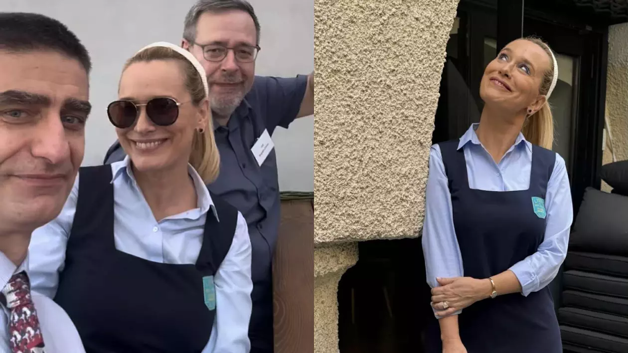 La intalnirea de generatie, Andreea Esca a impresionat prin aparitie. Imbracata intr-o tinuta inspirata din uniforma scolara – rochie bleumarin, camasa albastra, par prins in coada si bentita alba – prezentatoarea a readus atmosfera anilor ’80. Singurele detalii moderne au fost pantofii cu toc si telefonul mobil din mana.