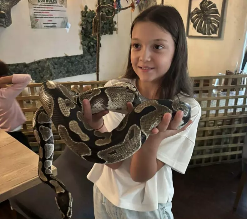 Ulterior, Sofia s-a bucurat de intalnirea cu rozatoare, testoase si chiar serpi. Imaginea in care apare tinand un sarpe in brate a atras imediat atentia.