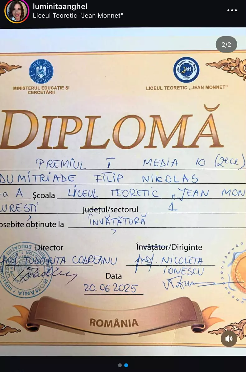 „Ai muncit tot anul pentru asta si pentru celelalte diplome... Iti multumim pentru cat de minunat esti, de consecvent, determinat si corect! Suntem cei mai fericiti parinti”, a transmis Luminita in mesajul sau online.